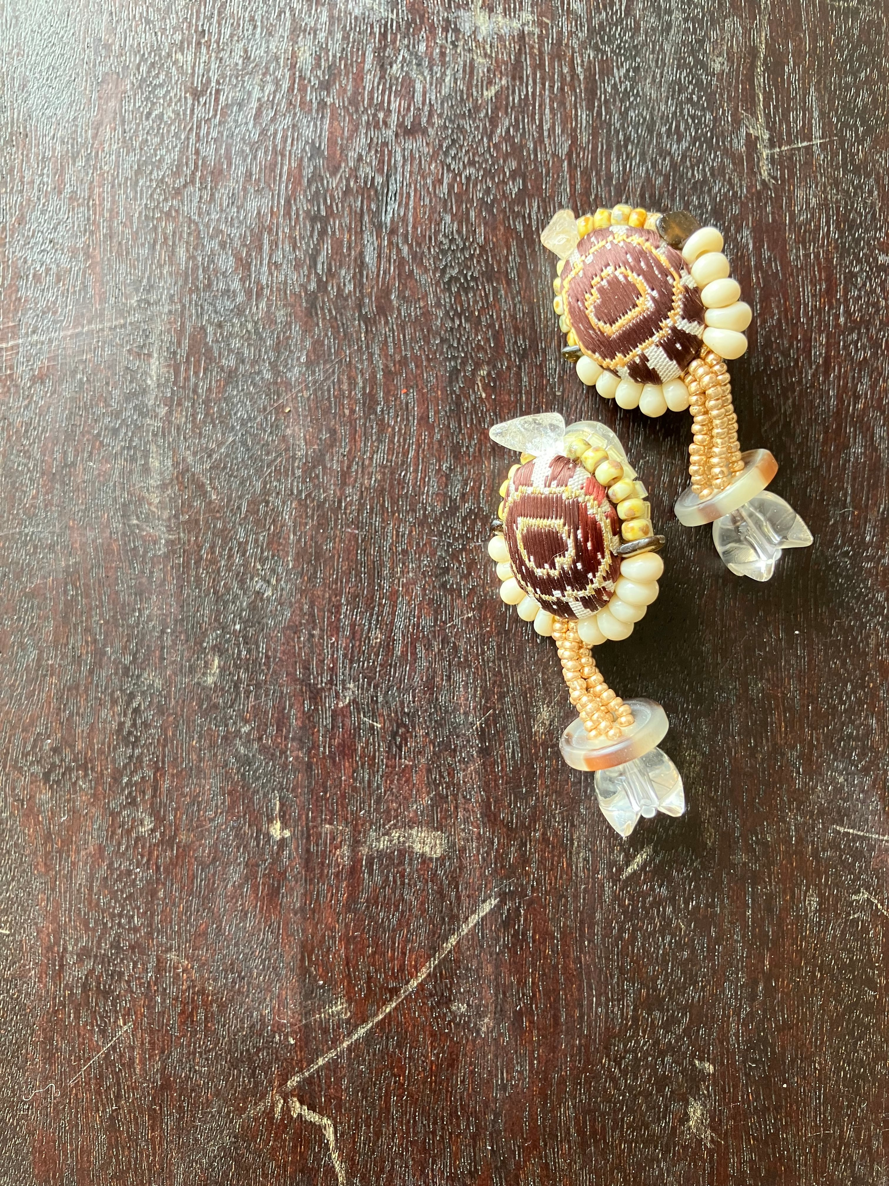 周囲には、アメリカンヴィンテージビーズを取り扱うTSUKURUさんによる刺繍を施しました。