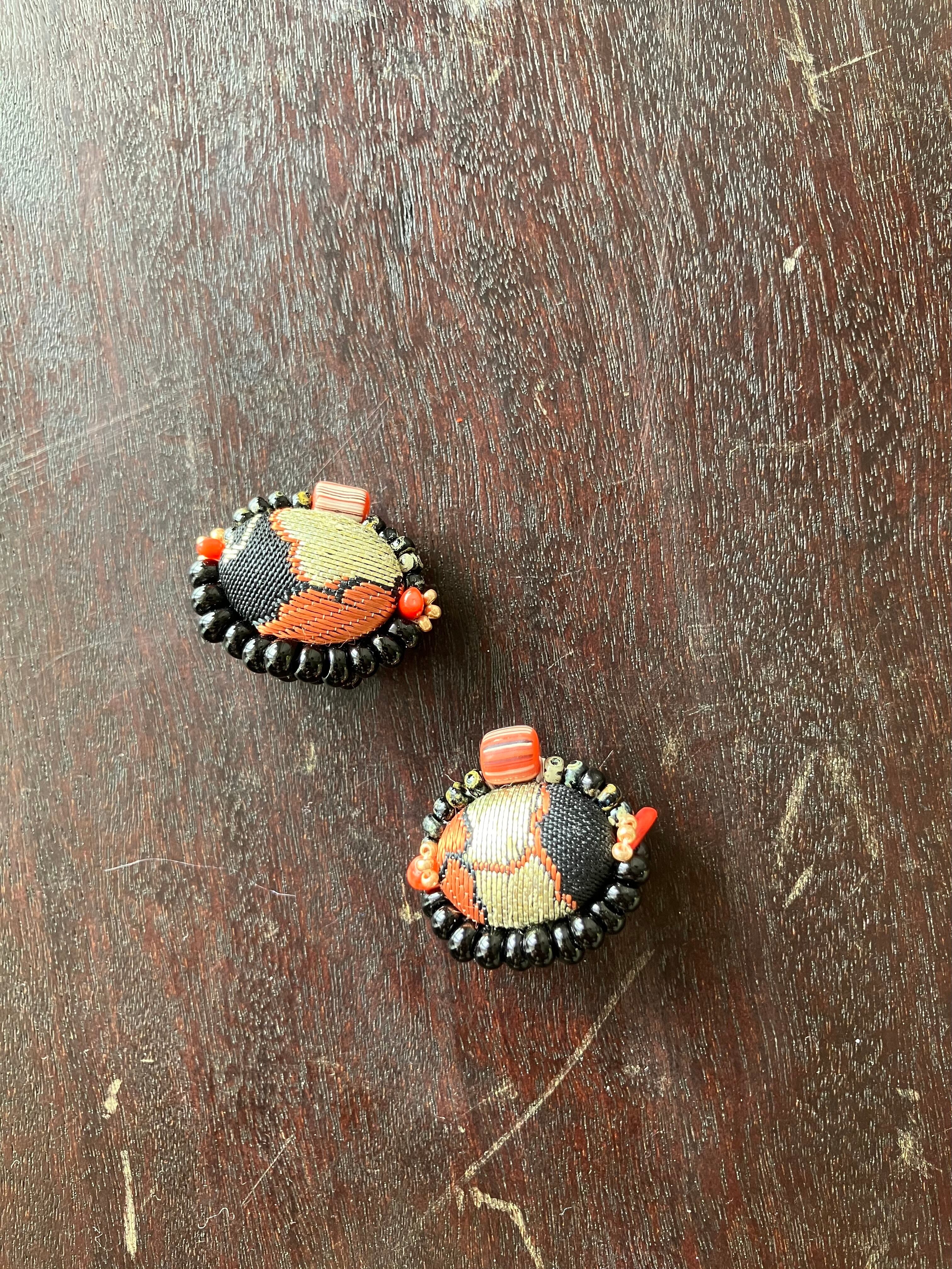 カボション部分には、アップサイクルした帯を使用しています。