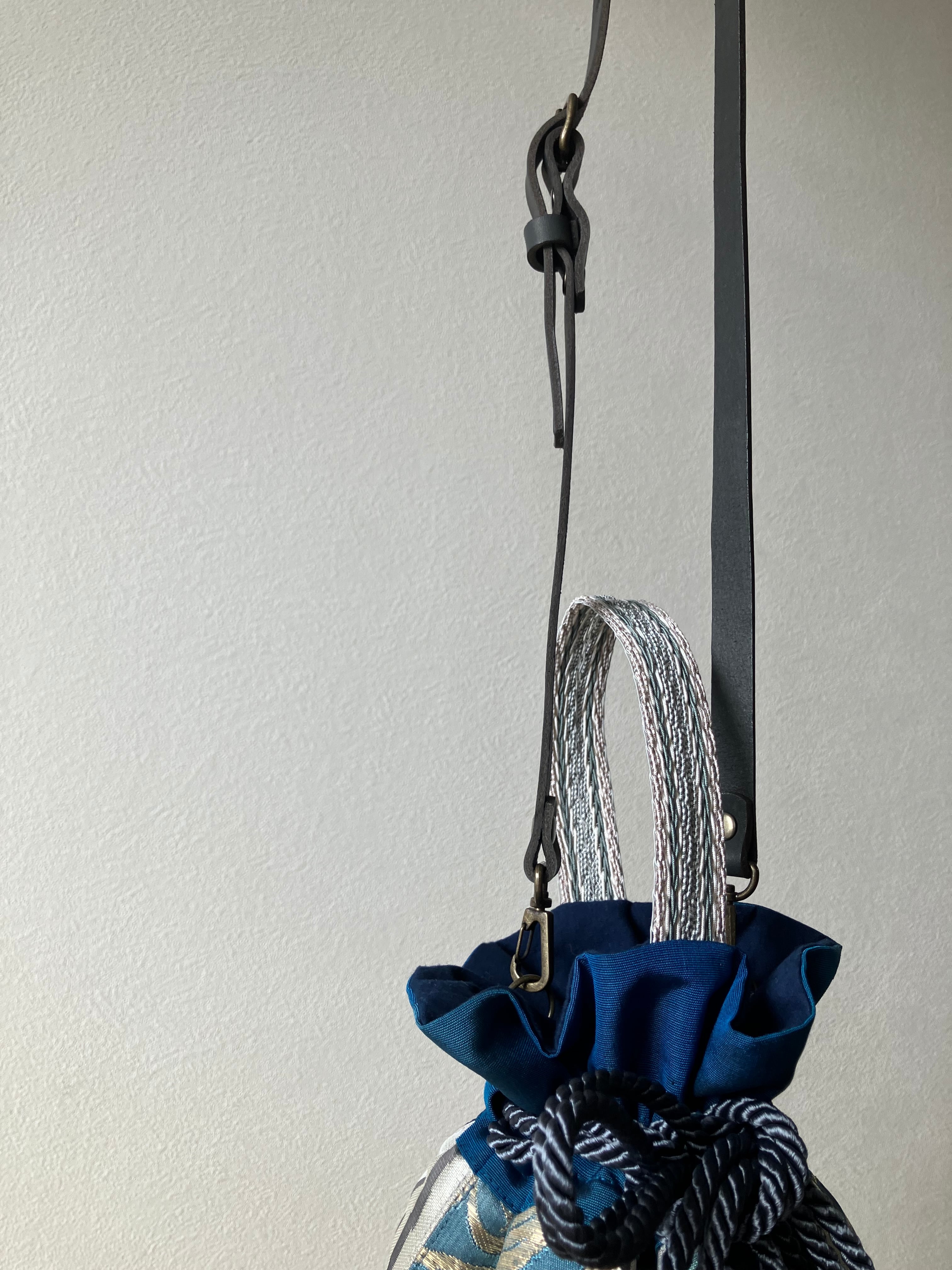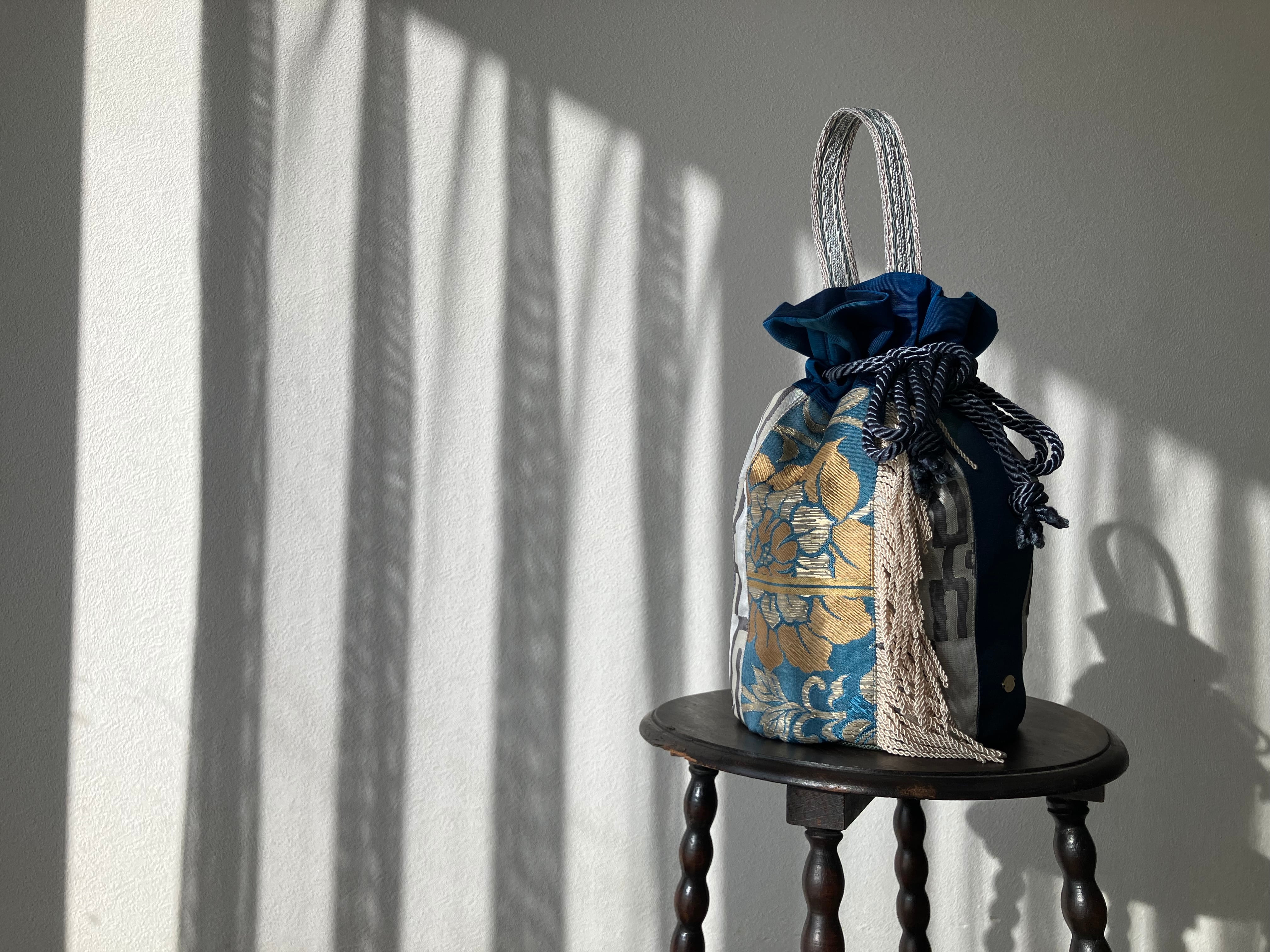 巾着の口を絞ると、内側からちらりと見えるのは深い藍色。