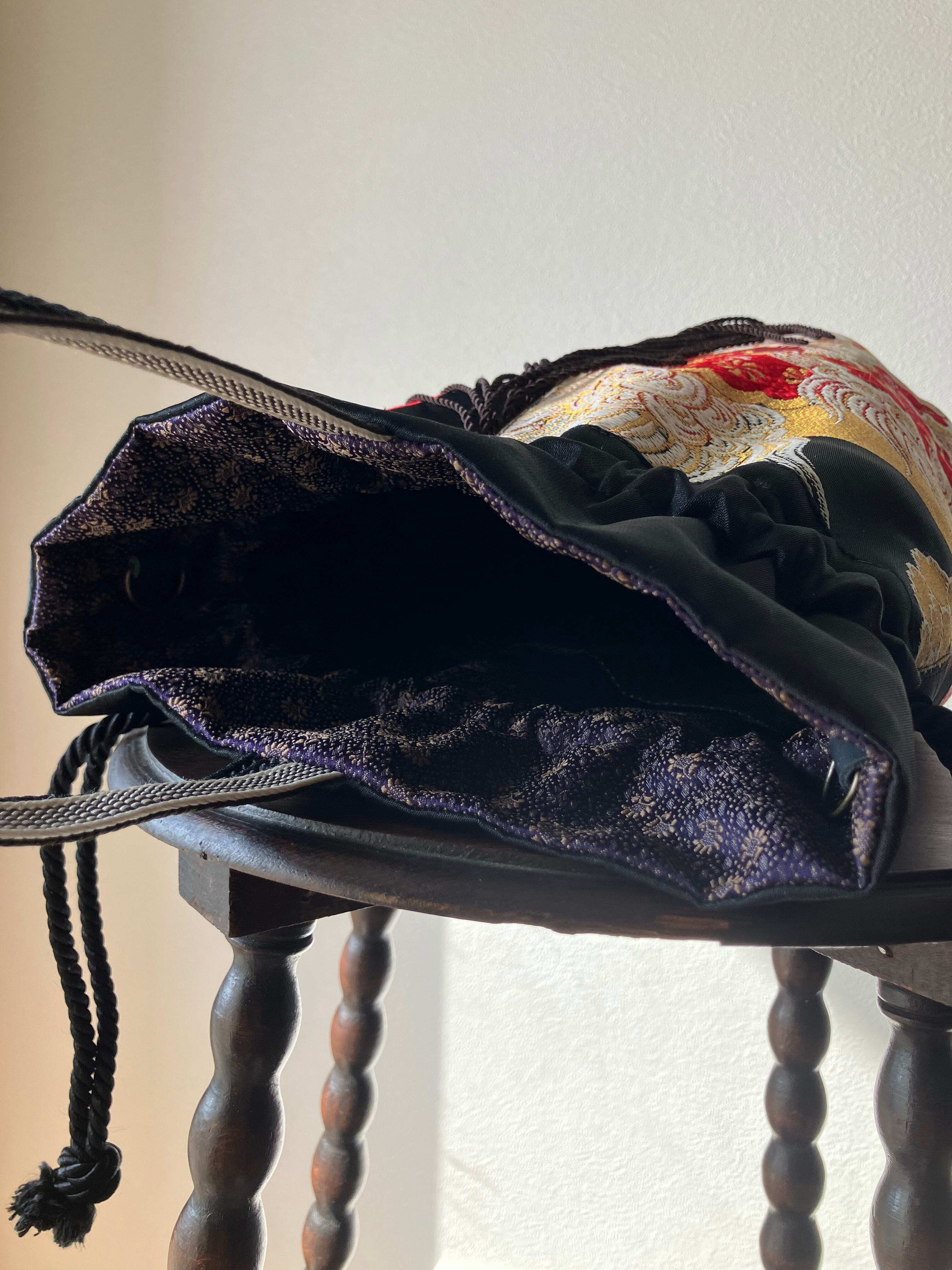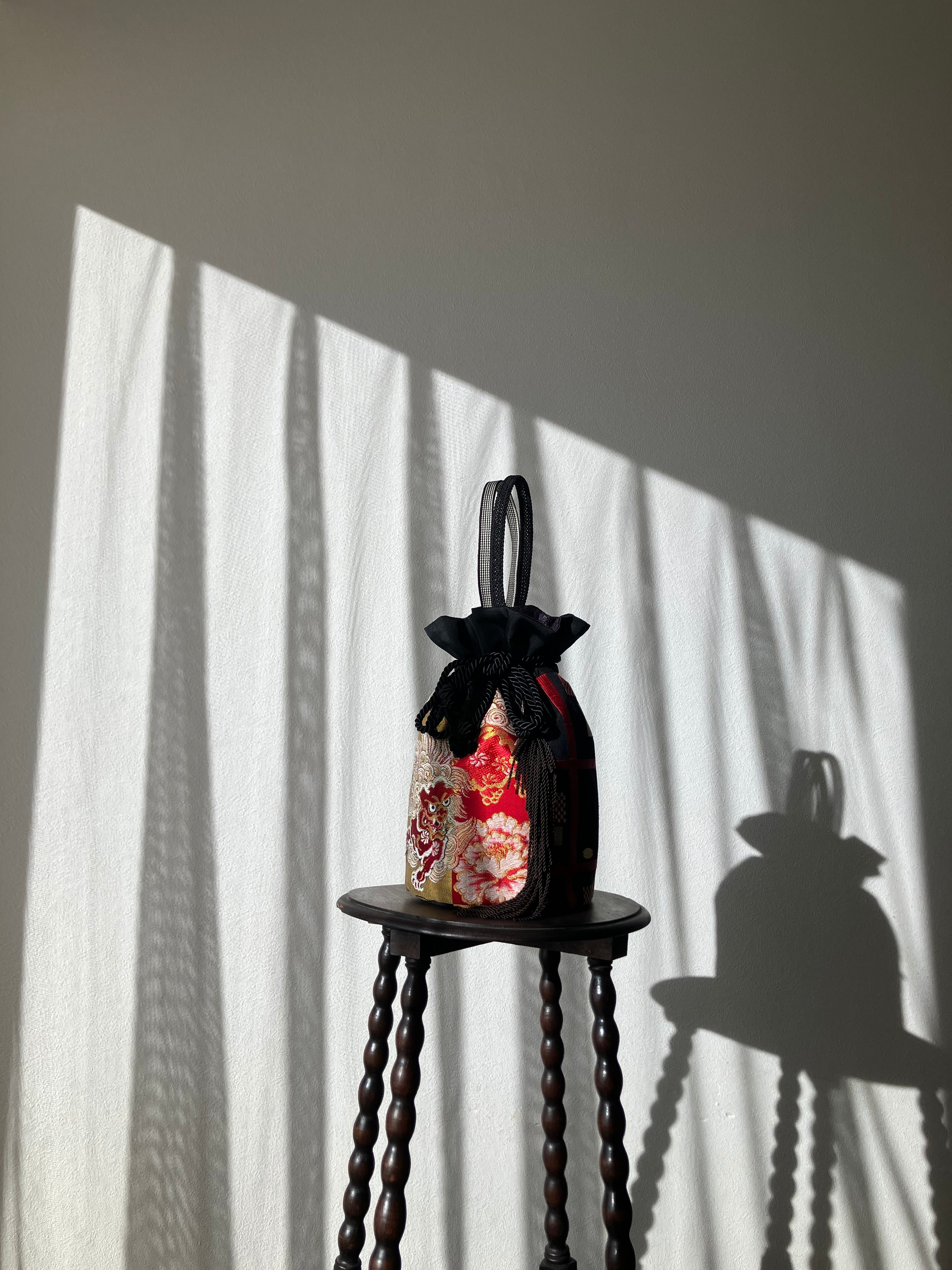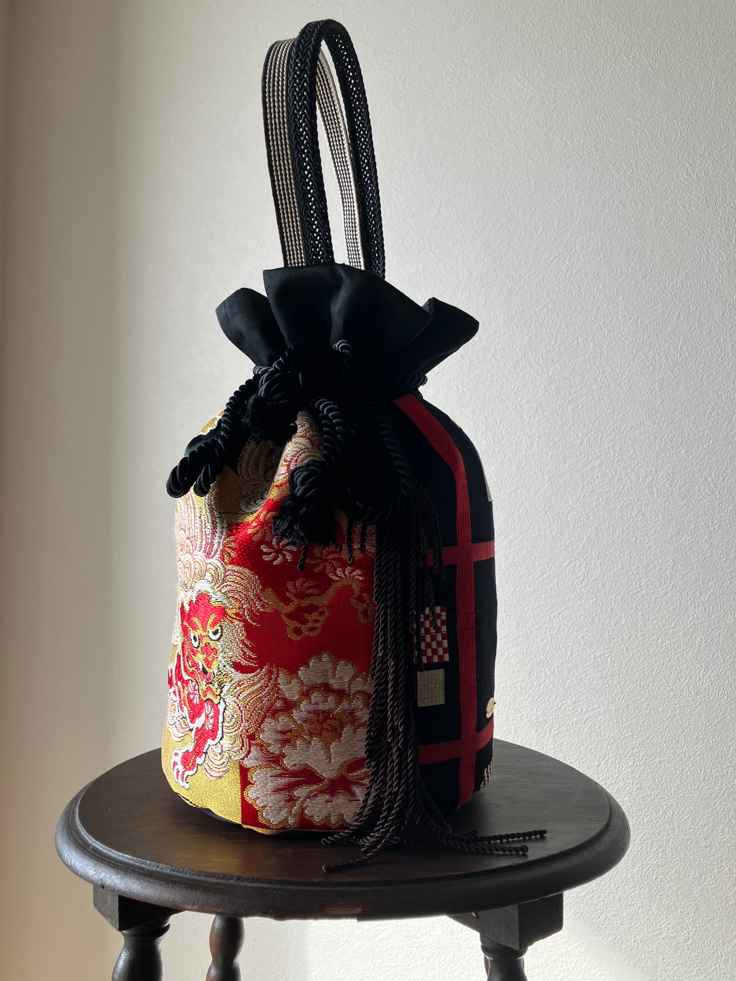 守りの象徴・獅子をまとう一点物の帯バッグ。